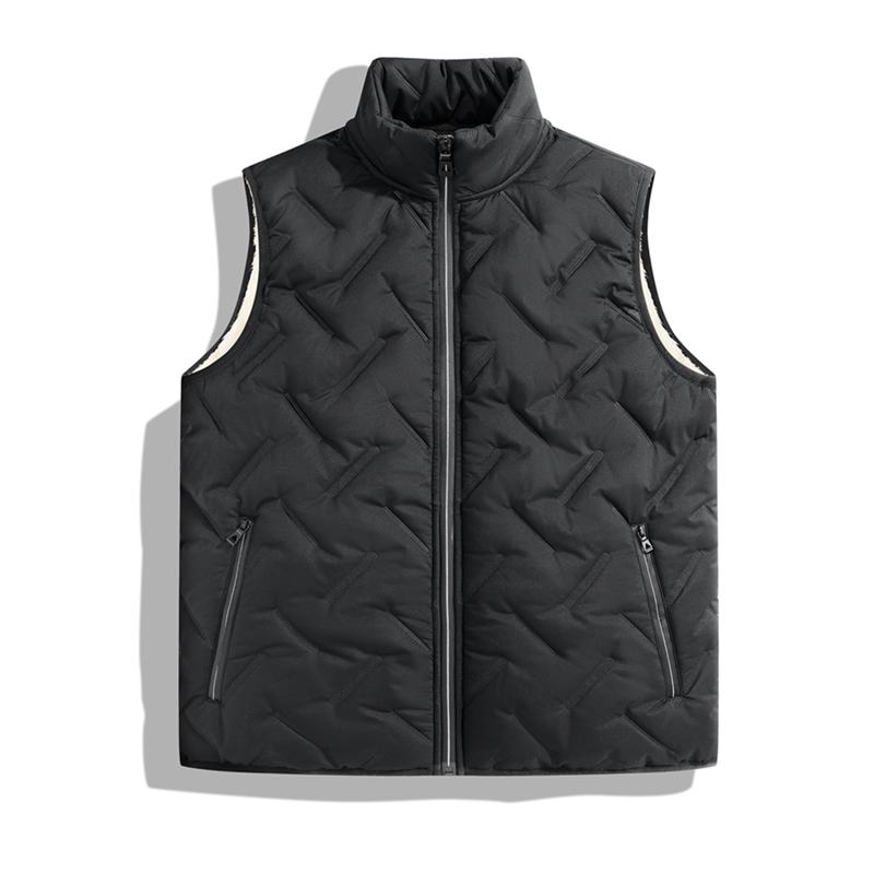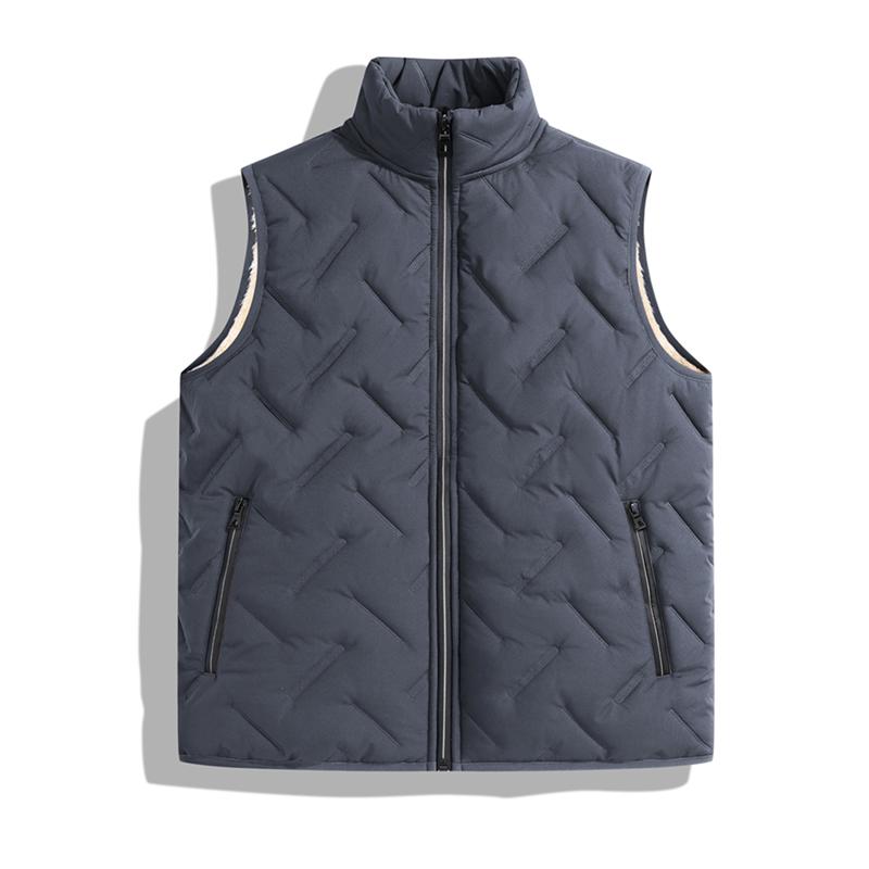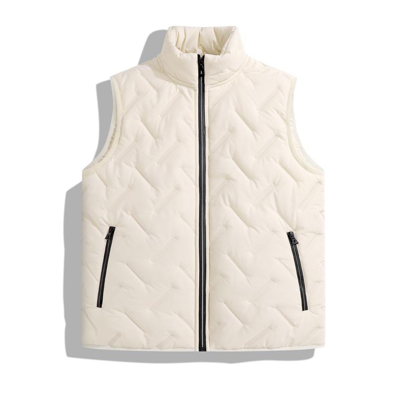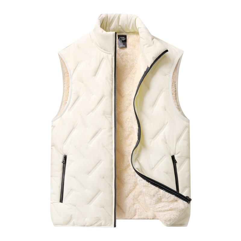 Men's Autumn Winter Warm Vest Fleece Lined Wool Regular Fit Sleeveless Zipper Design Easy Care Casual Style Medium Beige & Black Gilet Crewneck Top Outdoorfun - Menswear
