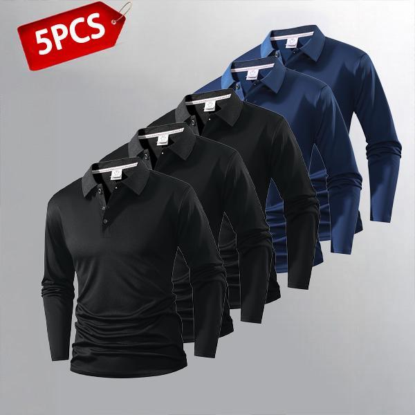 ✨5-Piece Set Men's Long Sleeve Polos✨