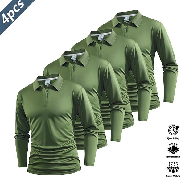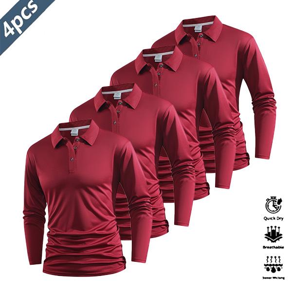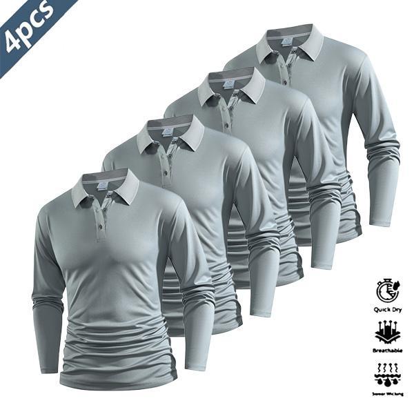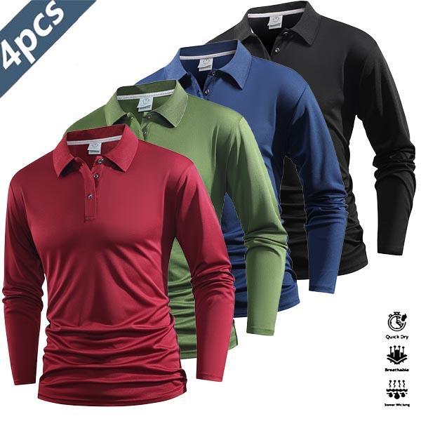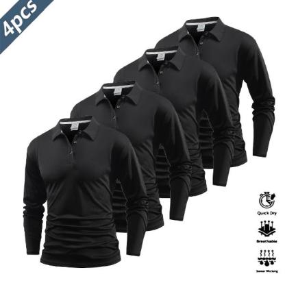 Four Pieces Casual Men's Long Sleeve Polo Shirt Quick Dry Golf Tennis Clothing Comfortable Equitation Fashion Sports Color Block Collar And Cuff Design