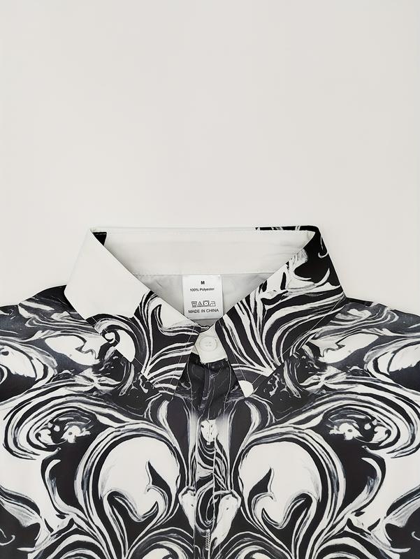 Casual gathering shirt, made of comfortable linen fabric, featuring wave embroidered print patterns and flag tearing effect design, suitable for daily outdoor sports tops and short sleeved casual collars
