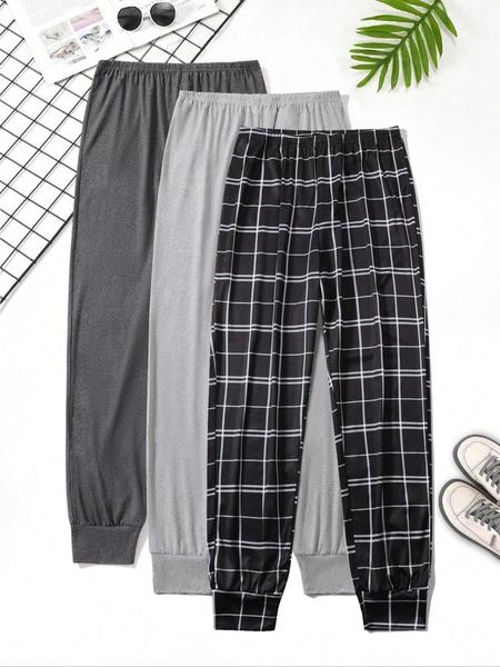 Men's Long Pants Sleepwear Set, Comfortable Plaid Pajama Bottoms, Casual Fitted Lounge Wear for Fall & Winter Relaxing Nights at Home