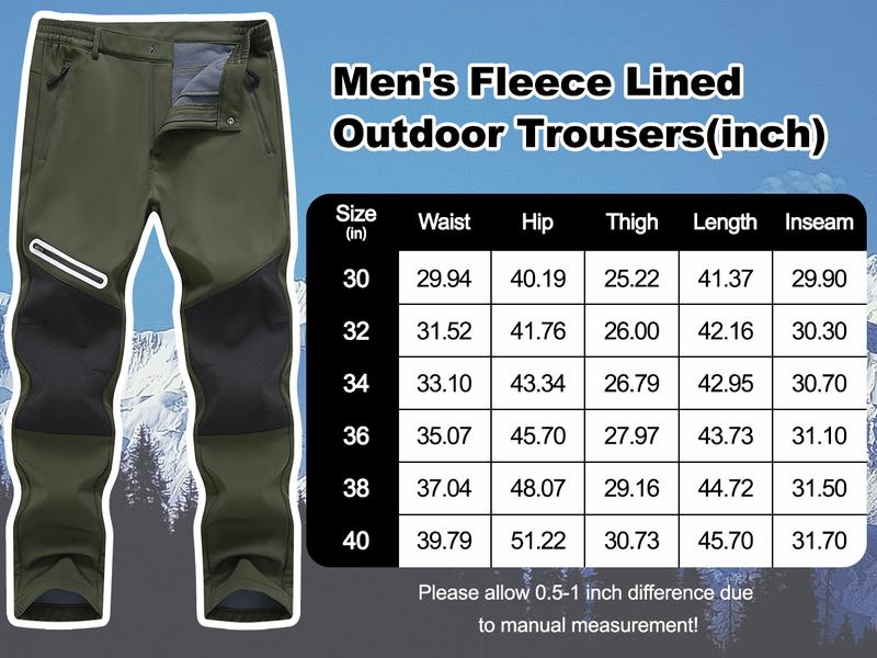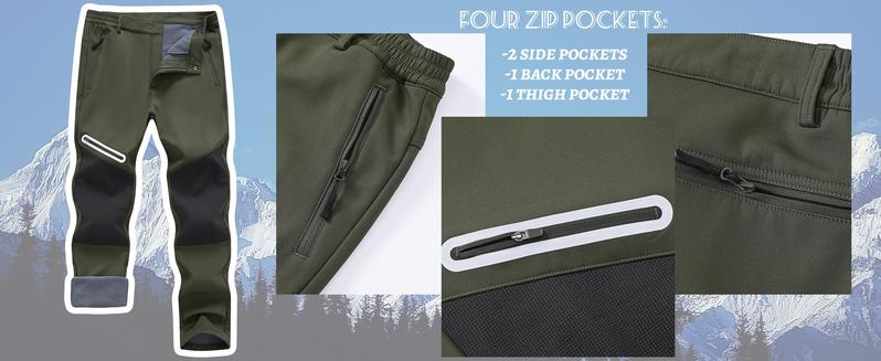 Men's Waterproof Pants Insulated Cold weather Hiking Winter Snow Ski Softshell Outdoor Pants Zipper Pockets Climbing Thermal Jogger Trousers Thermal Lined Jogger pants men