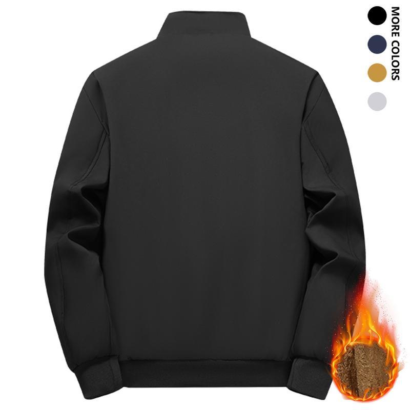 Men's Solid Color Zip Up Hooded Warm Fleece Lined Jacket, Regular Fit Casual Long Sleeve Front Zipper Coat, Suitable for Autumn and Winter, Men's Everyday Wear, Newly Designed Short Fleece Jacket for Autumn and Winter, Warm and Stylish Stand Collar Trendy