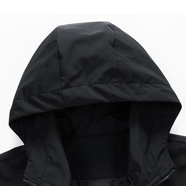 Drawstring hood design ensures a snug fit.