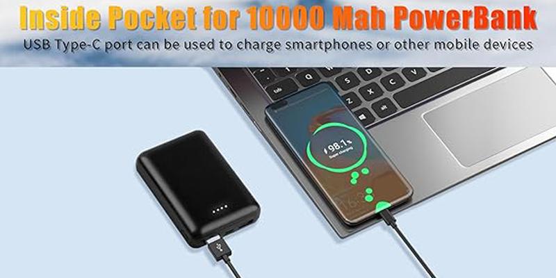 Equipped with a 10000mAh battery pack, the Rrtizan Heated Vest provides extended heating.At the lowest temperature, the back offers 10 hours, the front 16 hours, and both areas together 7 hours.The battery must be connected continuously; disconnection stops heating.It also serves as a power bank for charging phones.