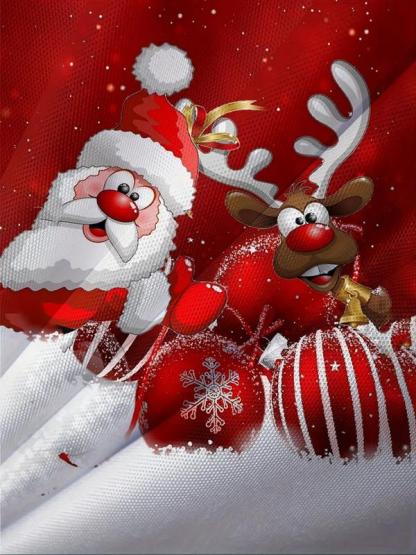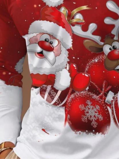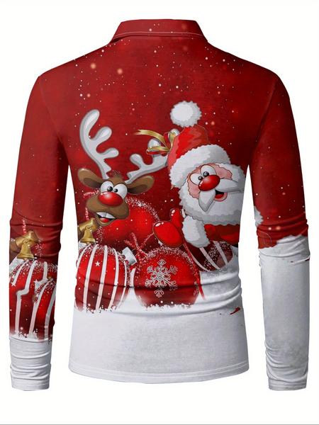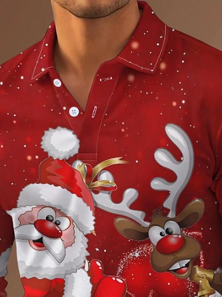 1 Men's Christmas Party Polo Shirt - Santa Claus and Reindeer Pattern Long Sleeve Top, Red and White Festive Design, Button-Down Collar, Christmas Formal and Casual Wear - Men's Shirt, Christmas Clothing, Holiday Attire, Comfortable Fit