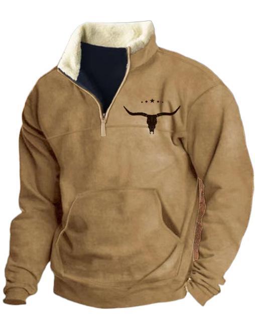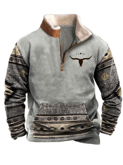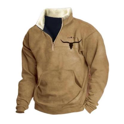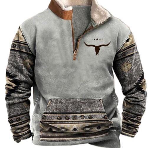 Trendy European Size Autumn Outdoor Casual Denim Aztec Men's Lapel Sports Sweater Collar Menswear Cotton Knitwear Polyester Sporty