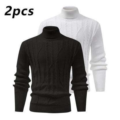 Men's Autumn Winter Turtleneck Knitwear Thermal Base Layer Set includes 2pcs Black & White Polyester Fabric Comfortable Warm Skin-friendly Anti-pilling Easy to Maintain Suitable for Office Work Gym Walks