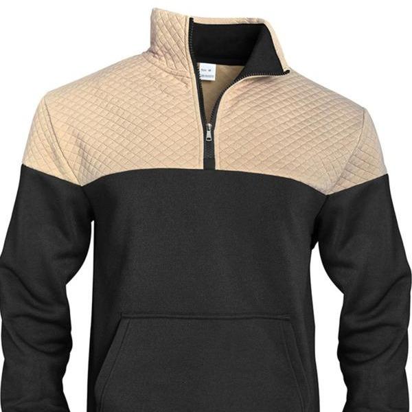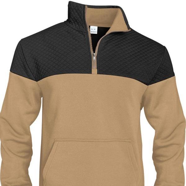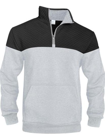 [Holiday Haul]KZZ Men's Fall/Winter Patchwork Design Casual Stand-Up Collar Zipper Hoodie Stylish Commuter Sweatshirt New Arrival Men's Warm Pullover christmas gifts for him