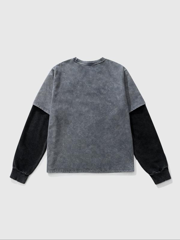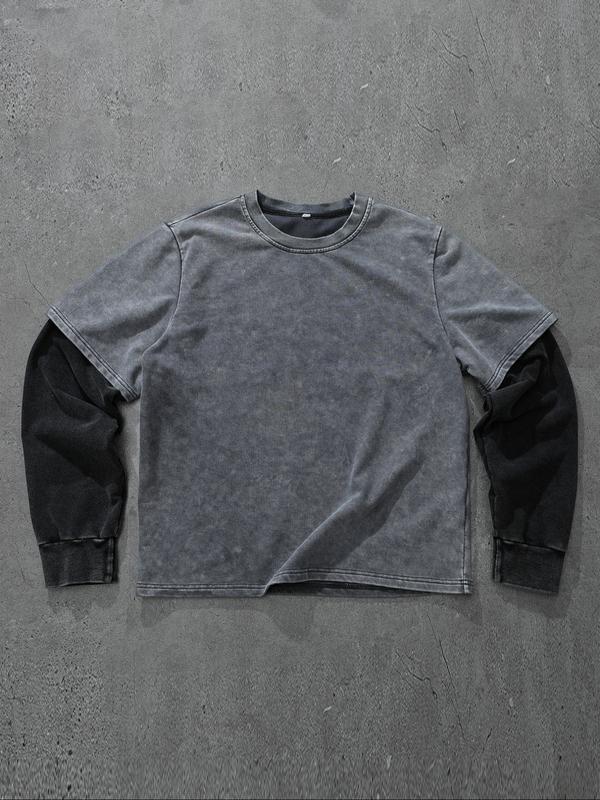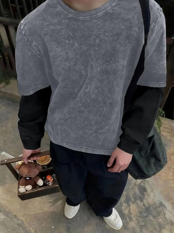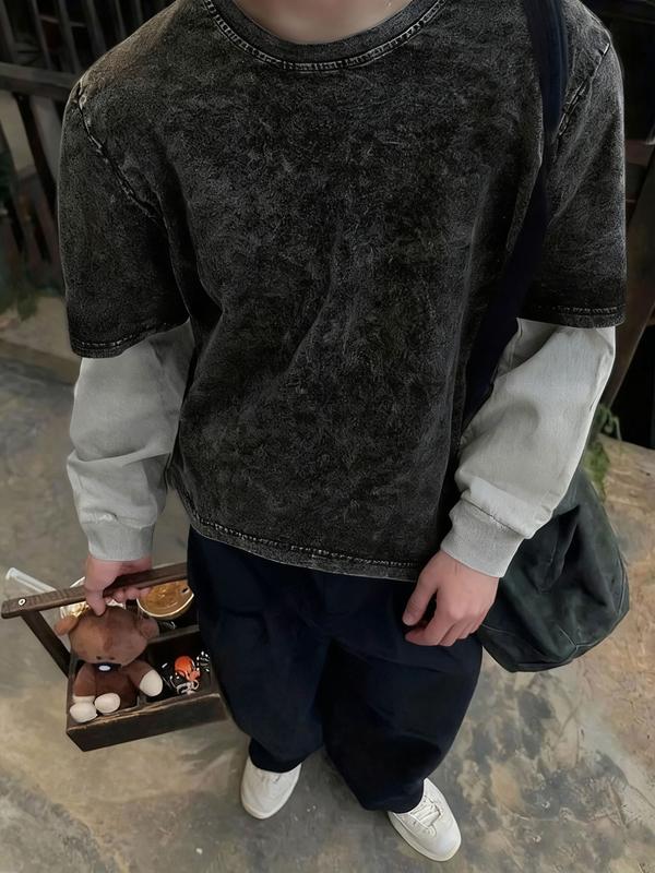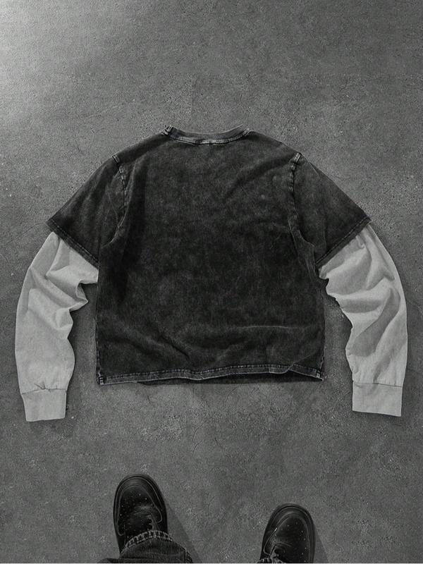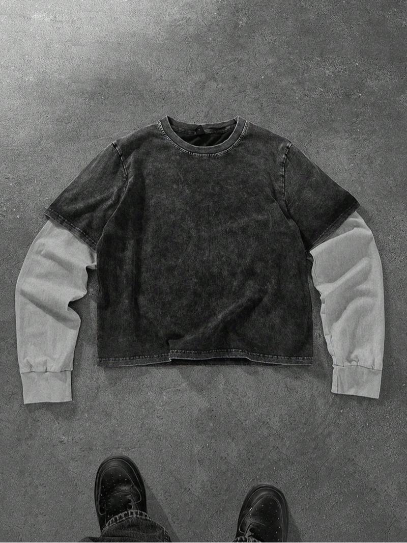 【Unique Color Scheme】: Featuring a gray-black primary tone with light gray inner sleeves, this T-shirt offers a distinctive look.