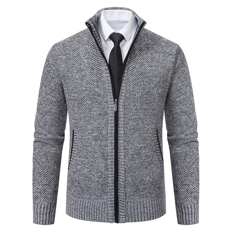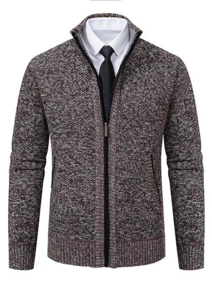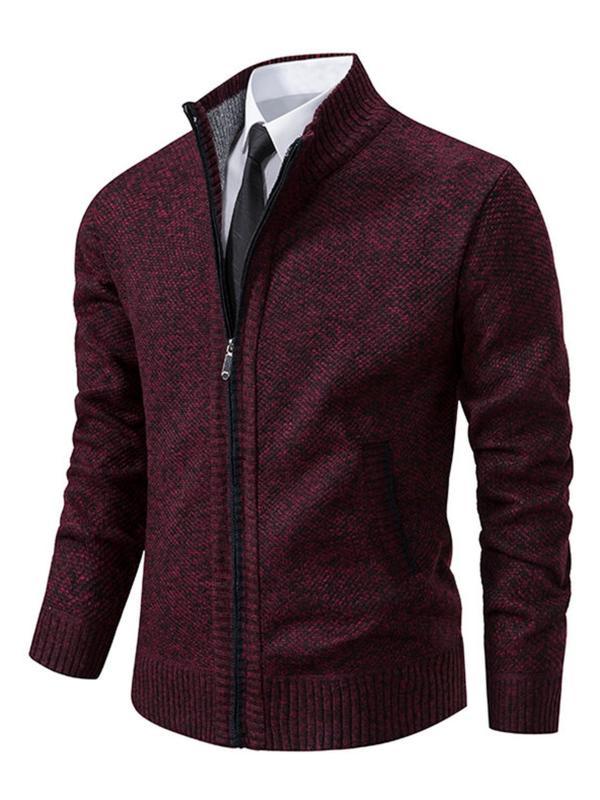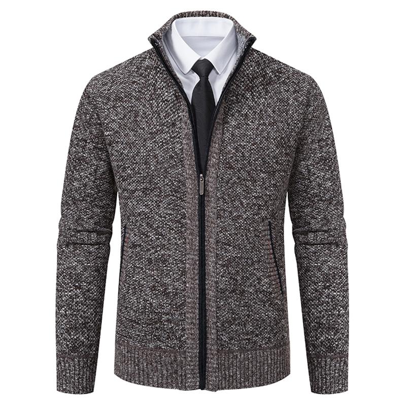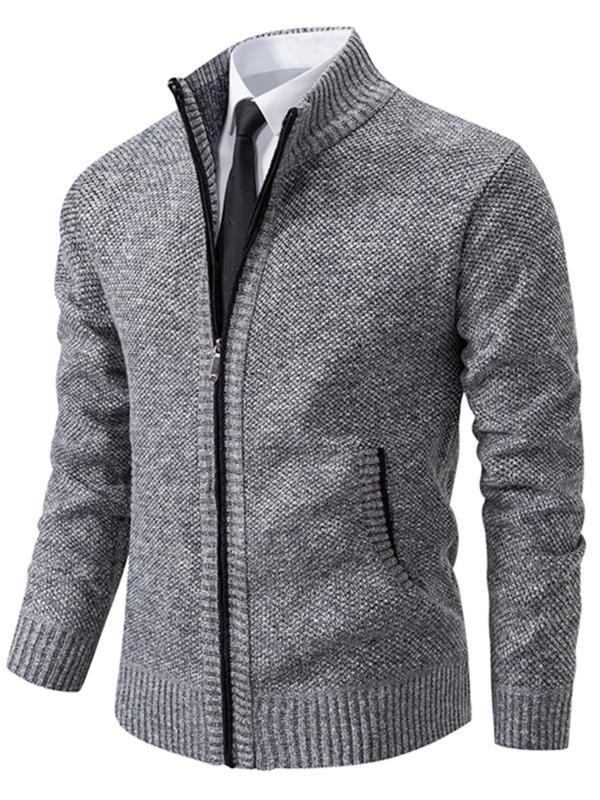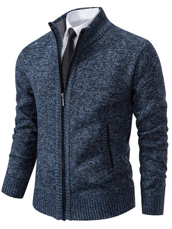 Men's Knit Cardigan Sweater Jacket, Winter New Casual Stand Collar Fleece Lined Thick Coat, Warm Zipper Pullover Outerwear
