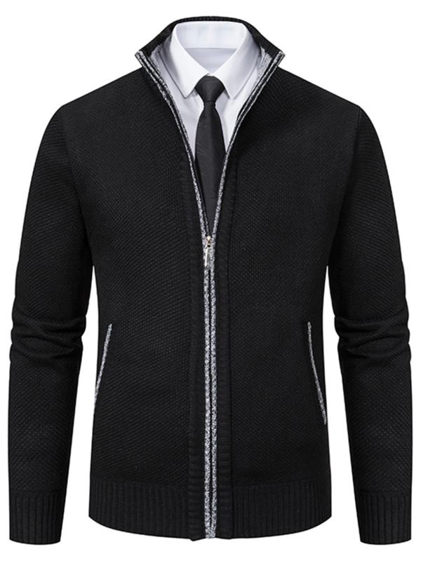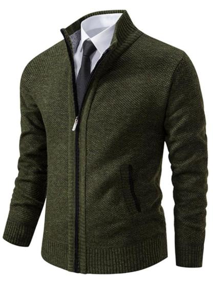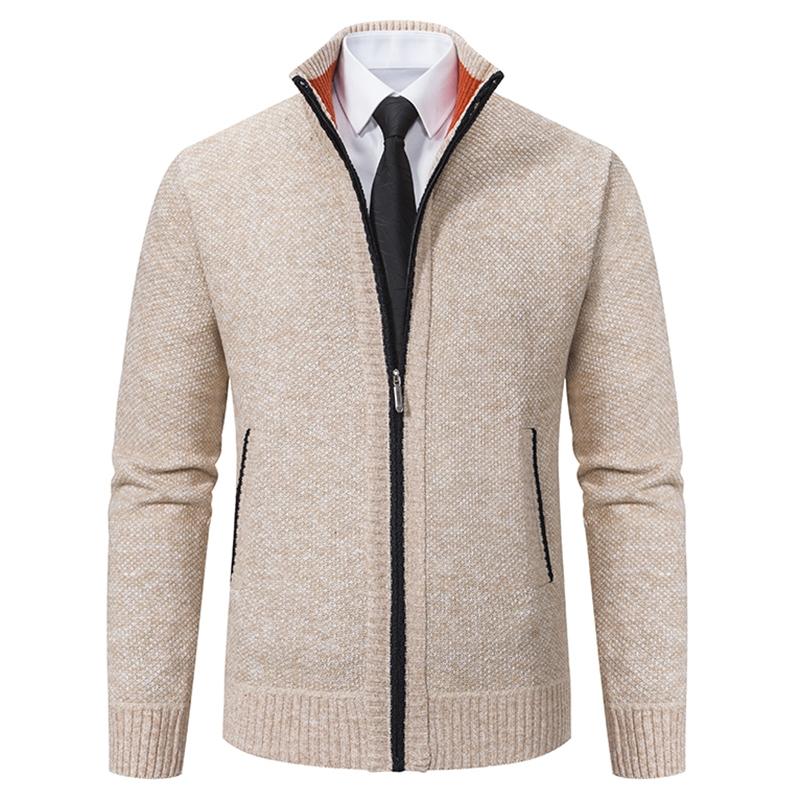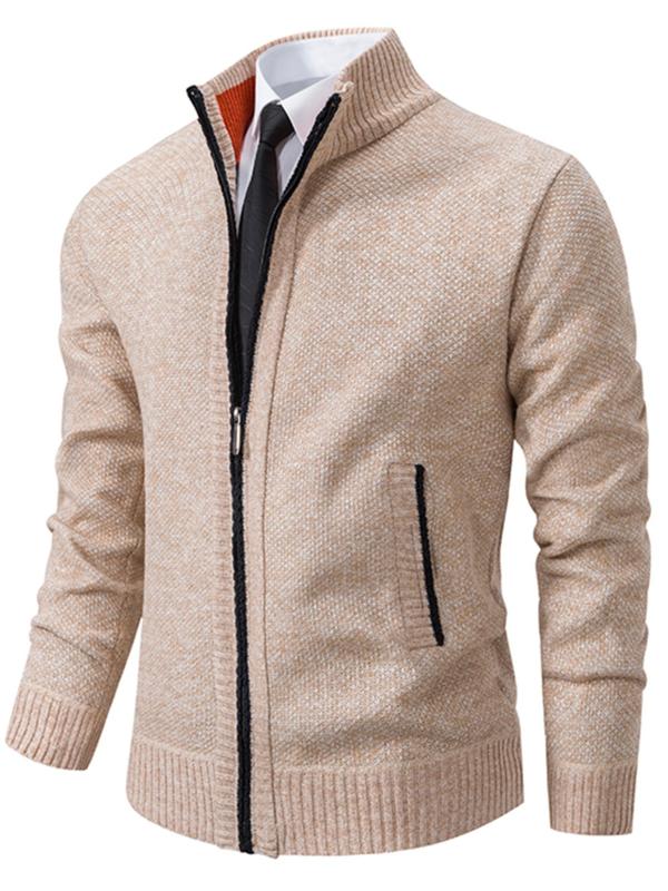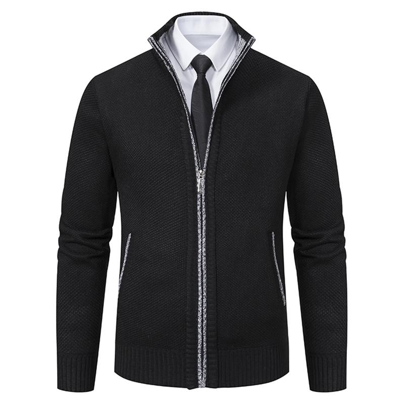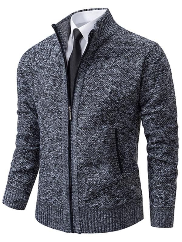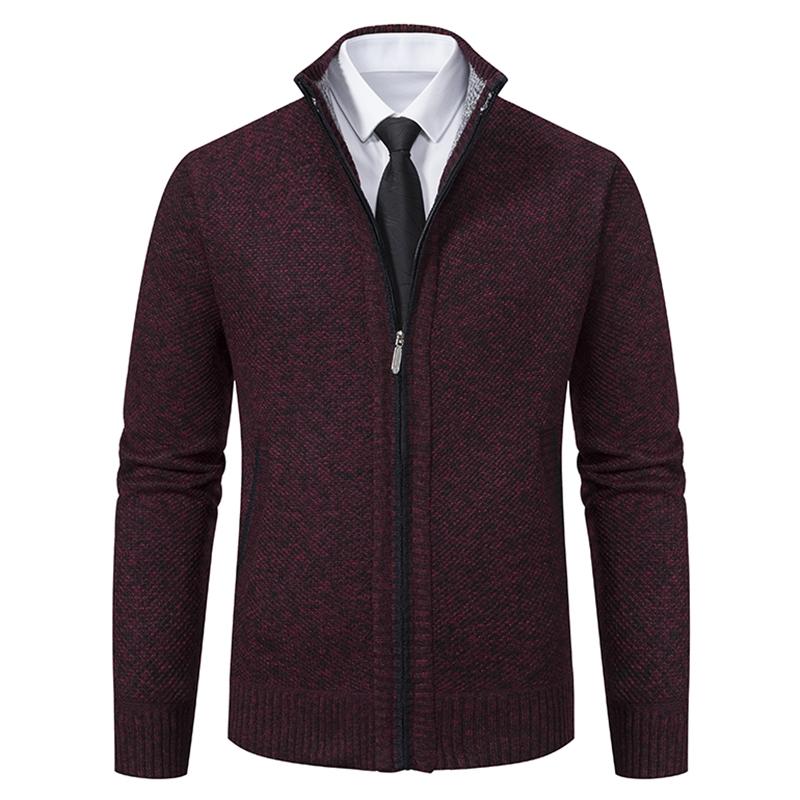 Men's Knit Cardigan Sweater Jacket, Winter New Casual Stand Collar Fleece Lined Thick Coat, Warm Zipper Pullover Outerwear
