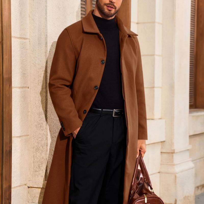 Stylish Design: Fall winter long trench coat for men, it features with a single-breasted front, hide button closure, lapel collar, sturdy buttons, two side slant pockets and one inner pocket, this fashion pea coat exudes sophistication.The modern fit and calf-length provide a polished silhouette, perfect for both casual and semi-formal occasions