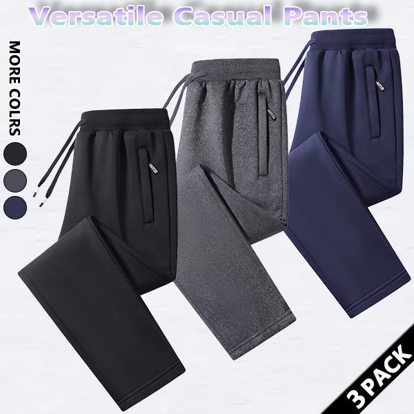 3 PACK Men's solid color straight sports pants, regular style casual and comfortable bottoms, large pockets and drawstring elastic waist design, suitable for daily wear, men's four seasons wear trousers
