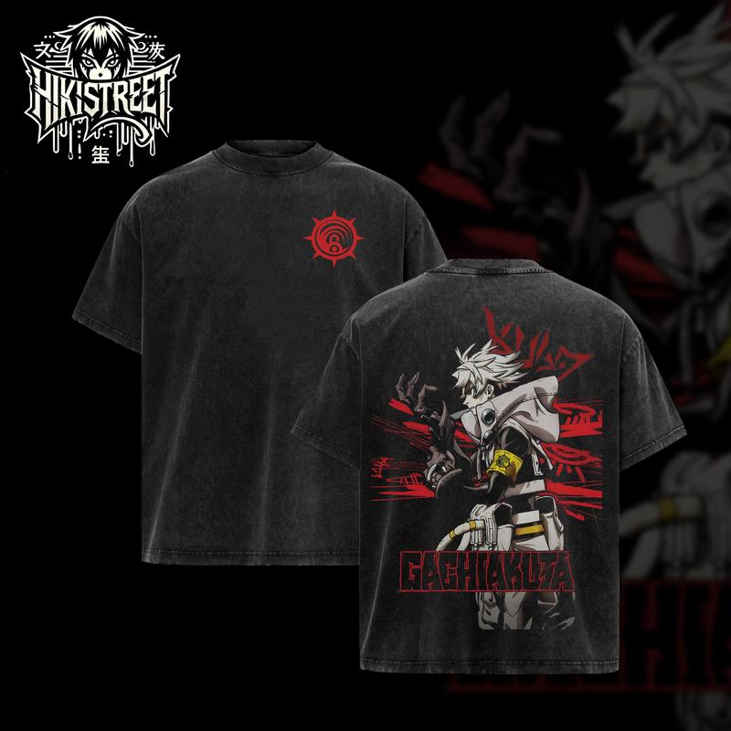 [HIKISTREET] Vintage Gachiakuta Collection Acid Washed T-Shirt, Gachiakuta Merch, Grunge Anime Washed Oversized Tee, Aesthetic Anime Streetwear Gift