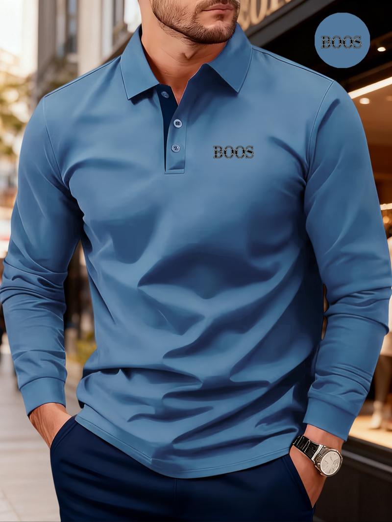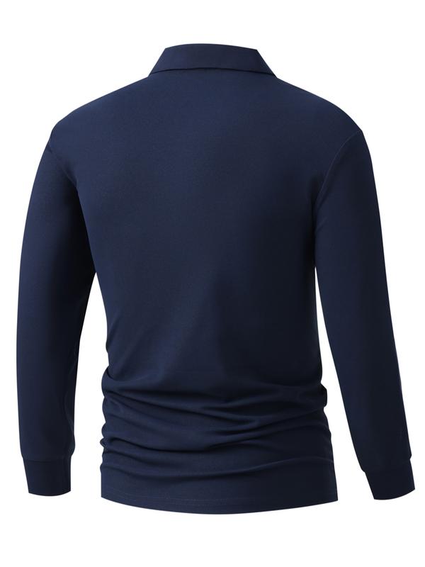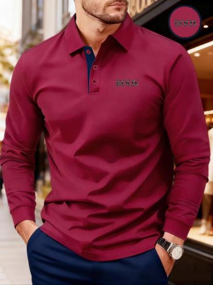 Men's Solid Color Long Sleeve Polo Shirt, High-End Fashion Fabric, Casual Sportswear, All Seasons Wear, Geometric Print, H-Type Fit