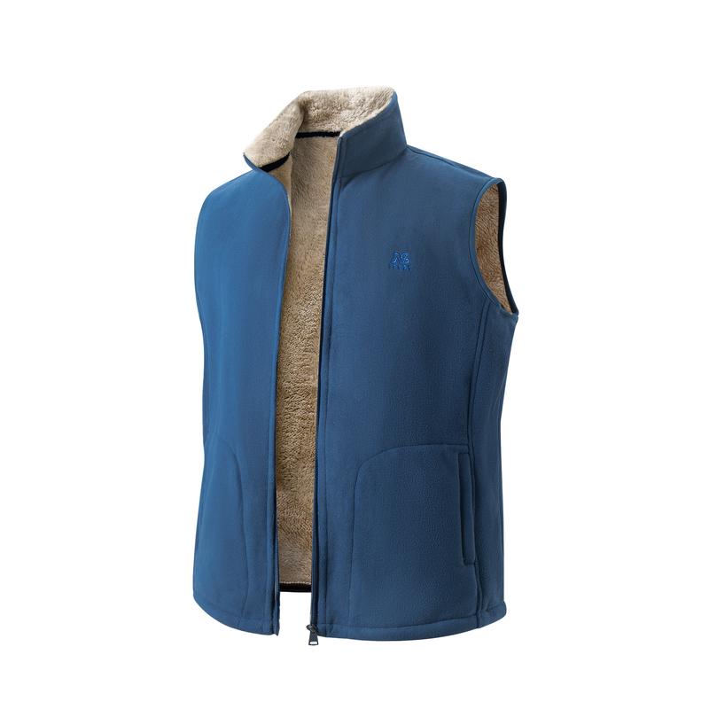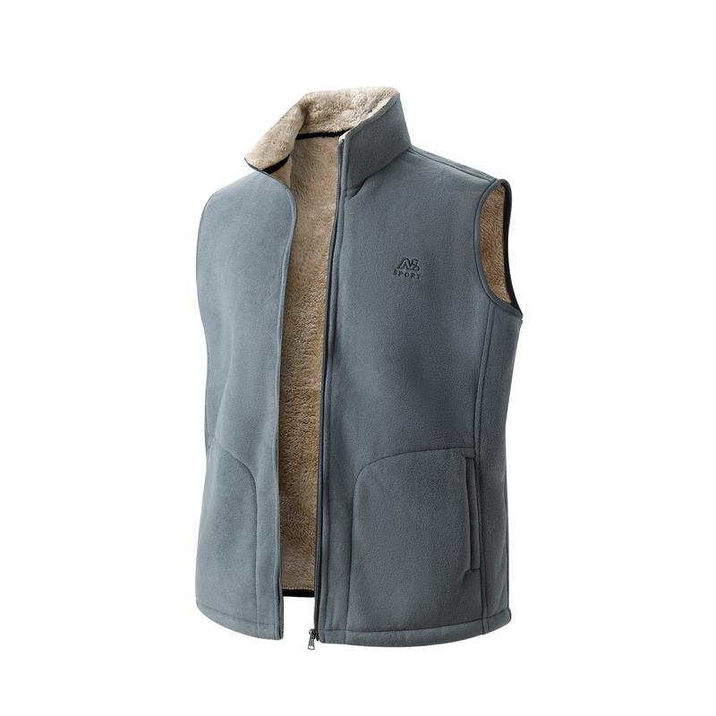 Men's Winter Outdoor Fleece Vest Sleeveless Jacket Thickly Padded Lined with Fleece Embroidered Front Chest Zip Front Closure for Outdoor Activities and Casual Wear