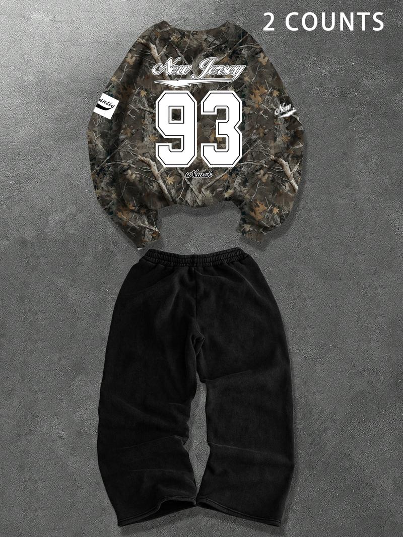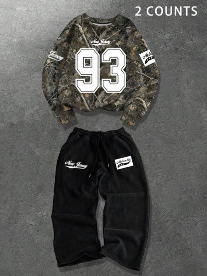 【Unique Print】: Features a distinctive digital 93 graphic print, setting it apart from standard sweatshirt sets.