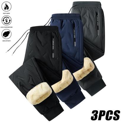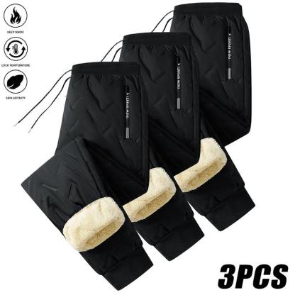 3-Pack Men's & Women's Thickened Winter Jogger Pants with Plush Fleece Lining Warm Leak-Proof Windproof Adjustable Drawstring Waist Zipper Pockets Solid Color for Casual Home and Outdoor Use