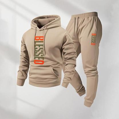 Men's Blessed Camouflage Pattern Print Hoodie and Drawstring Sweatpants Set, Menswear, Casual Athletic Long Sleeve Hooded Jacket & Trousers for Fall & Winter, Men's Clothing for Daily Wear, Sportswear Indoor Outdoor, Tracksuit, Athleisure