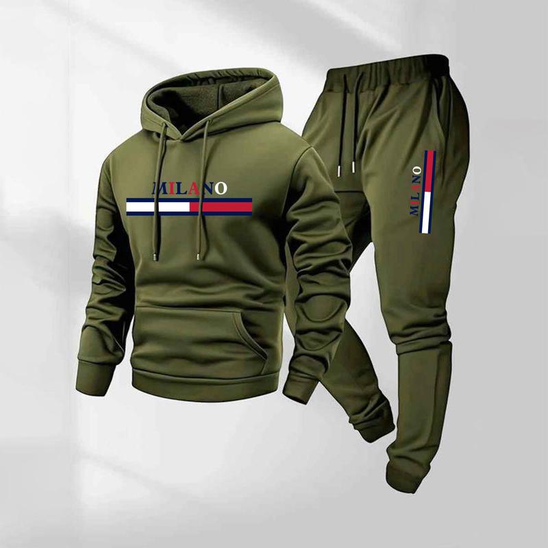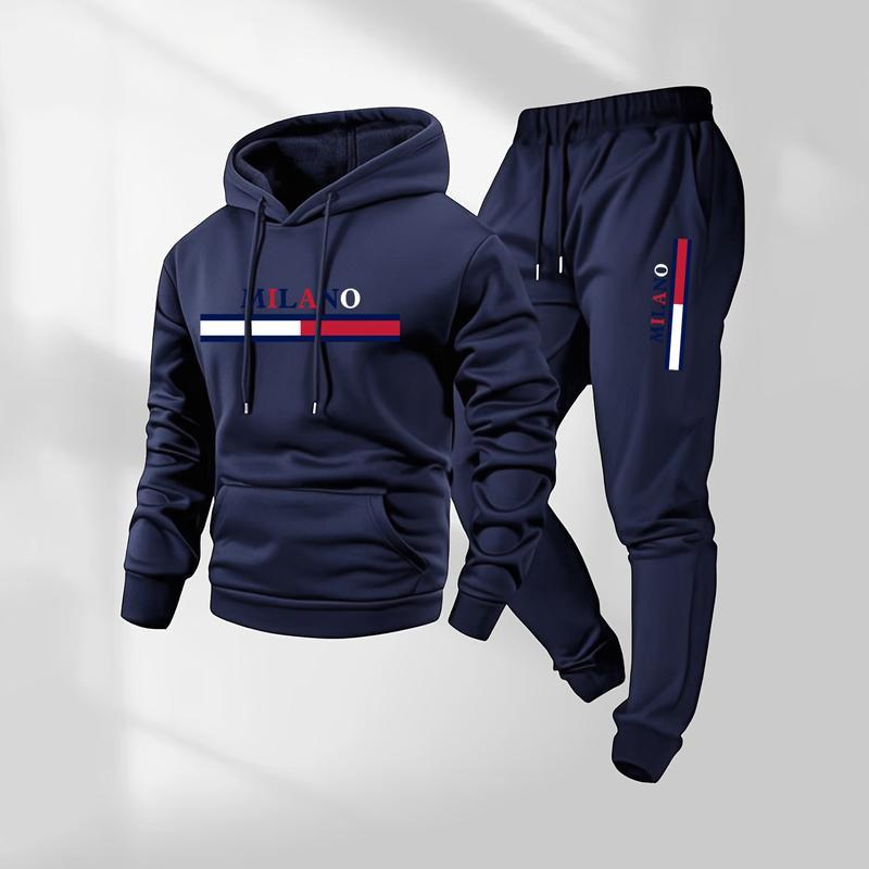 Men's MILANO Letter Print Hoodie and Drawstring Sweatpants Set with Pockets, Casual Athletic Long Sleeve Hooded Jacket & Jogger Pants, Fall & Winter Sportswear, Street Style Tracksuit for Indoor & Outdoor Activities, Men’s Everyday Wear
