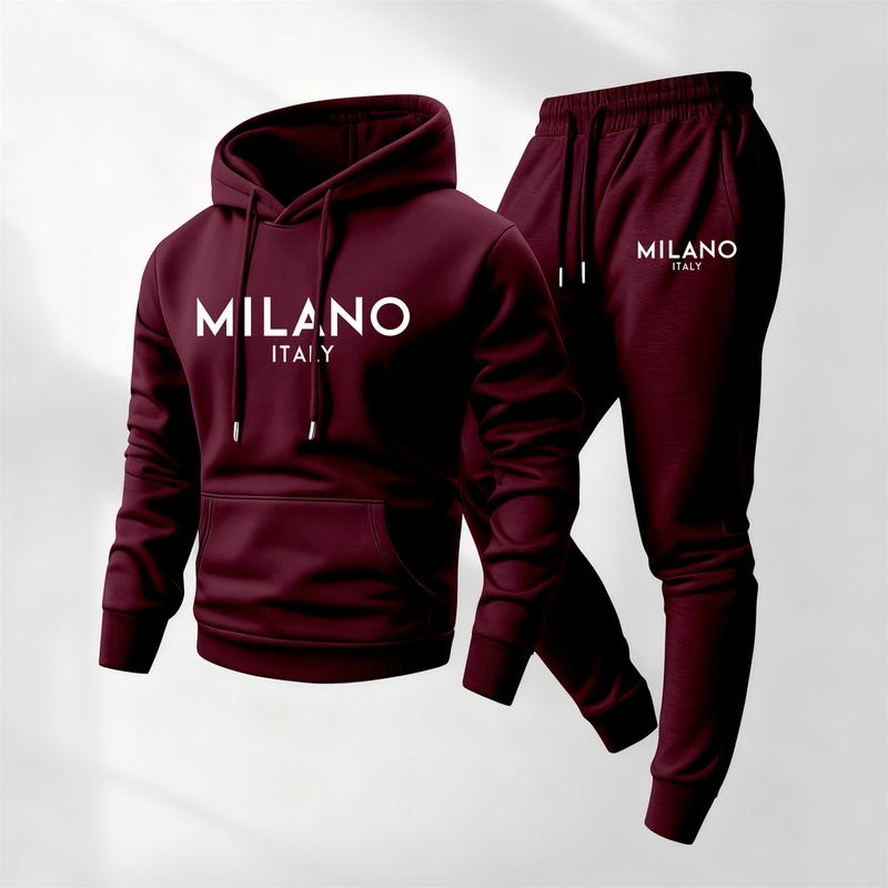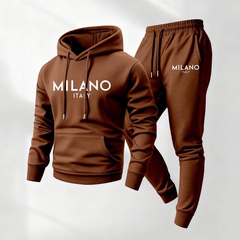 Men's Milano Printed Hoodie and Drawstring Sweatpants Set with Pockets, Casual 2-Piece Sweatshirt and Jogger Outfit, Long Sleeve Fall Winter Sportswear, Athleisure Tracksuit Set for Indoor and Outdoor Activities