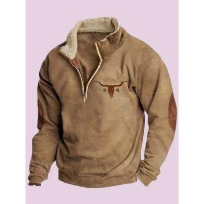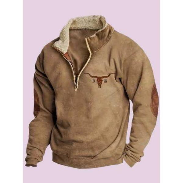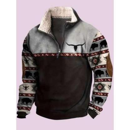 This casual men's jacket features a plush fur collar that adds warmth and a stylish touch, making it a standout piece for relaxed or layered looks. /Long sleeves offer extra coverage for chilly days, while the printed design enhances your outfit with bold personality and visual interest. /The half-zip front allows for easy wear and improved breathability, ensuring you stay comfortable throughout the day in any casual setting. /Crafted from a soft and durable blend of 55% polyester and 45% cotton, this jacket feels gentle on the skin and holds up well through regular wear. /Whether styled with jeans or layered over tees and sweaters, it effortlessly elevates your wardrobe with a touch of modern edge and everyday functionality.