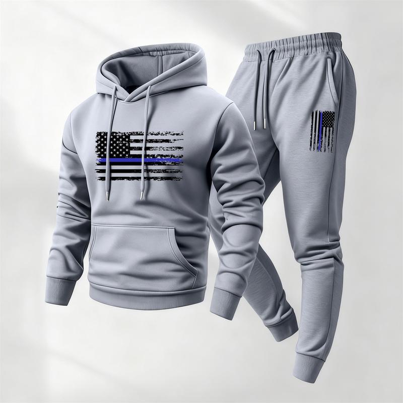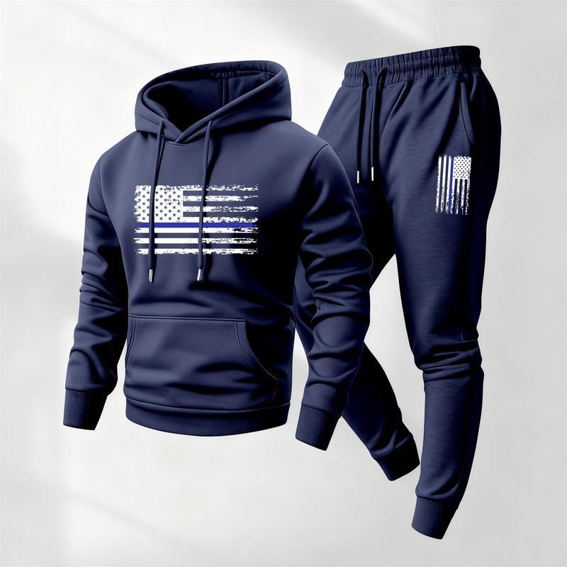 Men's America Flag Printed Hoodie and Drawstring Sweatpants Set, Menswear, Casual Athletic Long Sleeve Hooded Jacket & Trousers for Fall & Winter, Men's Clothing for Daily Wear, Sportswear Indoor Outdoor, Tracksuit, Athleisure Summer Clothes