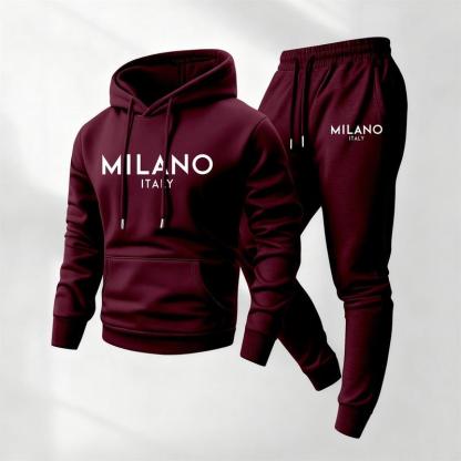 Men's Milano Letter Printed Hoodie and Drawstring Sweatpants Set, Menswear, Casual Athletic Long Sleeve Hooded Jacket & Trousers for Fall & Winter, Men's Clothing for Daily Wear, Sportswear Indoor Outdoor, Tracksuit, Athleisure Summer Clothes