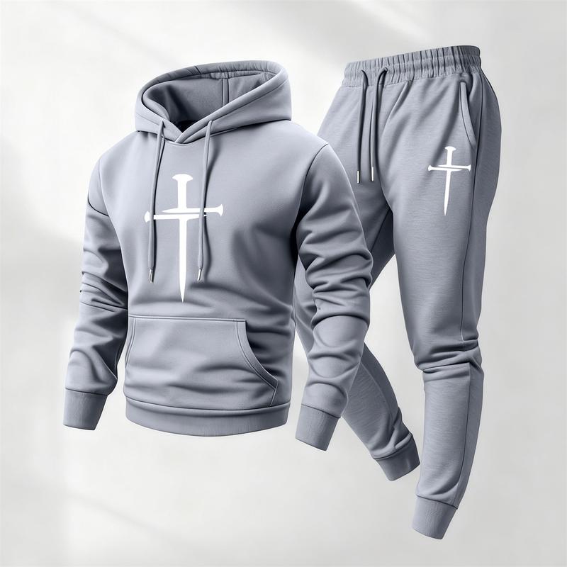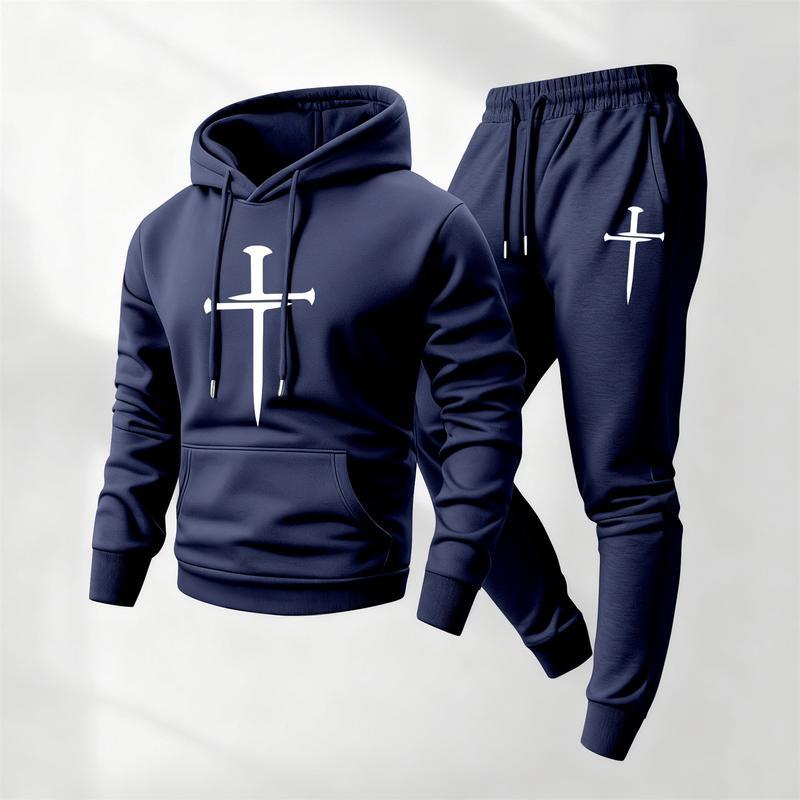 Men's Christian Printed Hoodie and Drawstring Sweatpants Set, Menswear, Casual Athletic Long Sleeve Hooded Jacket & Trousers for Fall & Winter, Men's Clothing for Daily Wear, Sportswear Indoor Outdoor, Tracksuit, Athleisure Summer Clothes