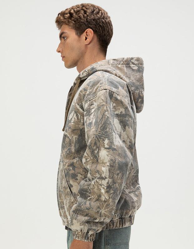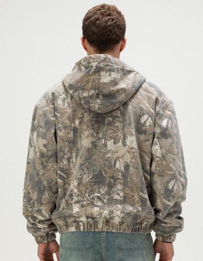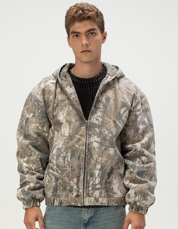 RSQ Oversized Hooded Twill Jacket. The RSQ Oversized Hooded Twill Jacket for men combines rugged style with everyday comfort, making it a versatile essential for cooler weather. Featuring an allover camo pattern, this jacket delivers a bold, outdoors-inspired look while maintaining a modern edge. The zip-up front closure ensures easy wear, and the drawstring hood provides adjustable coverage against the elements. Elastic cuffs and hem offer a secure fit that keeps warmth in, while the quilted lining adds an extra layer of insulation for lasting comfort. Perfect for layering, this jacket blends utility and streetwear appeal for a confident, casual finish. Oversized fit. 100% Cotton. 100% Polyester lining. Machine wash. Imported.