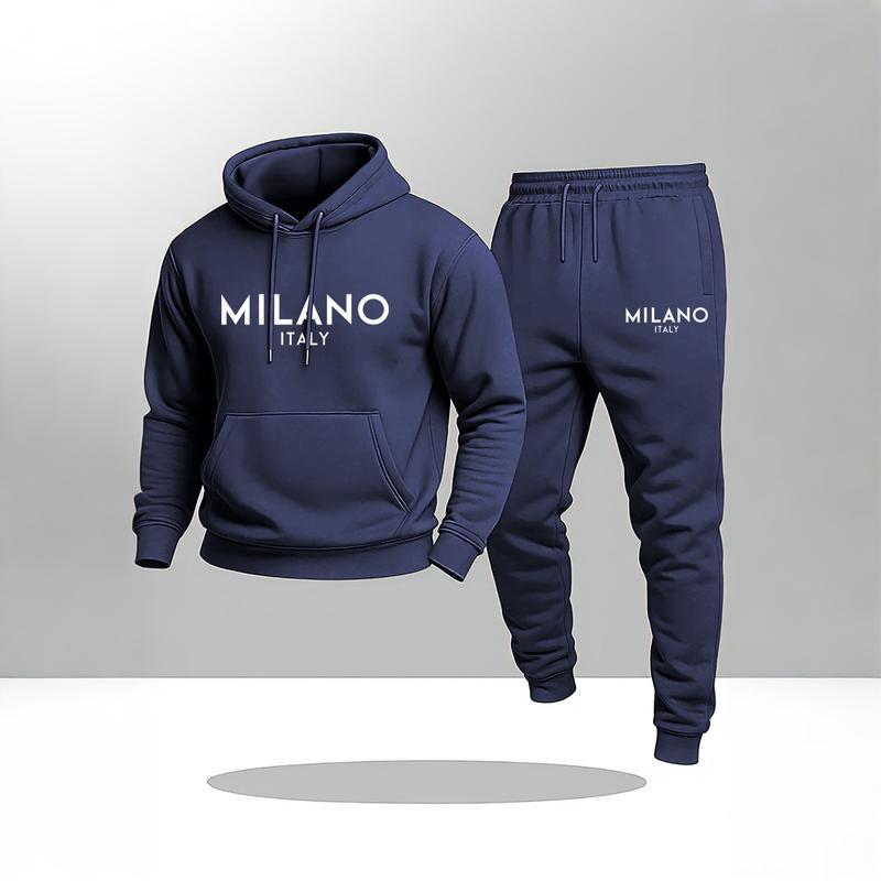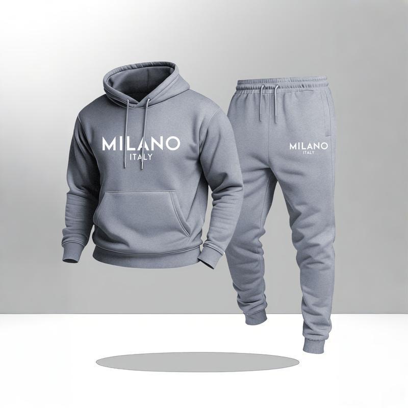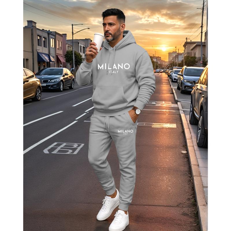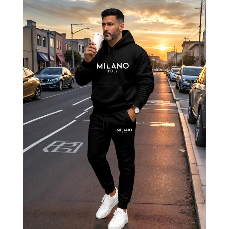 Men's Milano Letter Printed Hoodie and Drawstring Sweatpants Set, Menswear, Casual Athletic Long Sleeve Hooded Jacket & Trousers for Fall & Winter, Men's Clothing for Daily Wear, Sportswear Indoor Outdoor, Tracksuit, Athleisure Summer Clothes