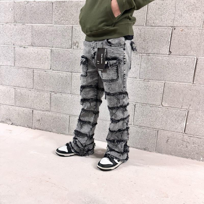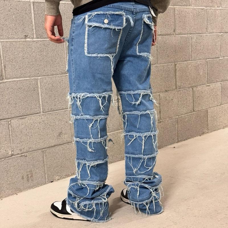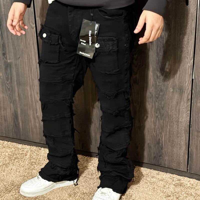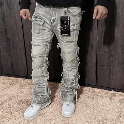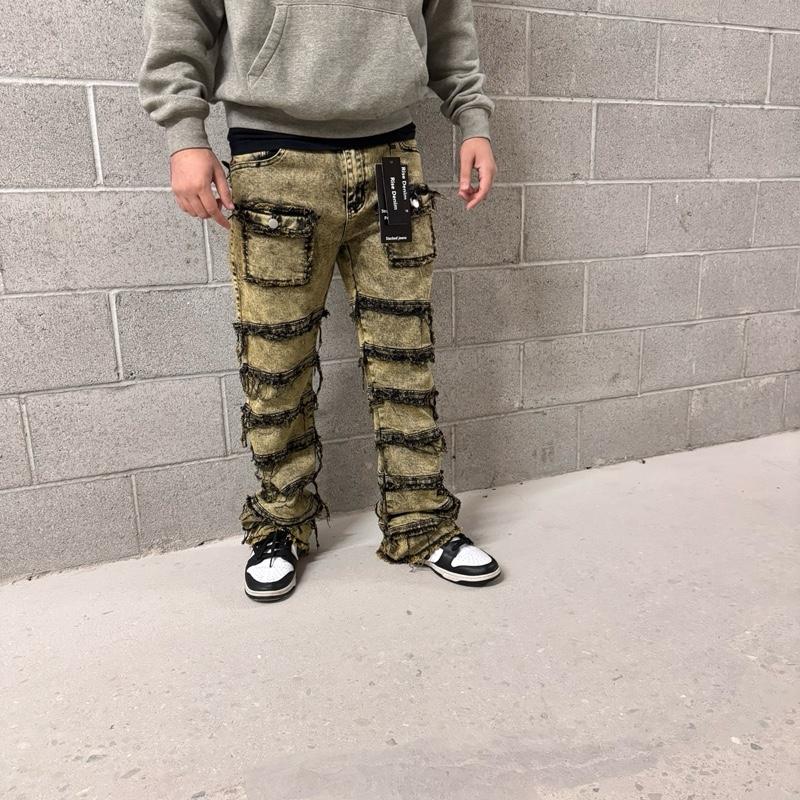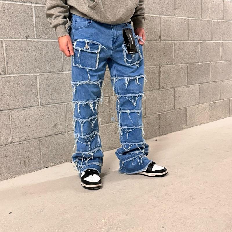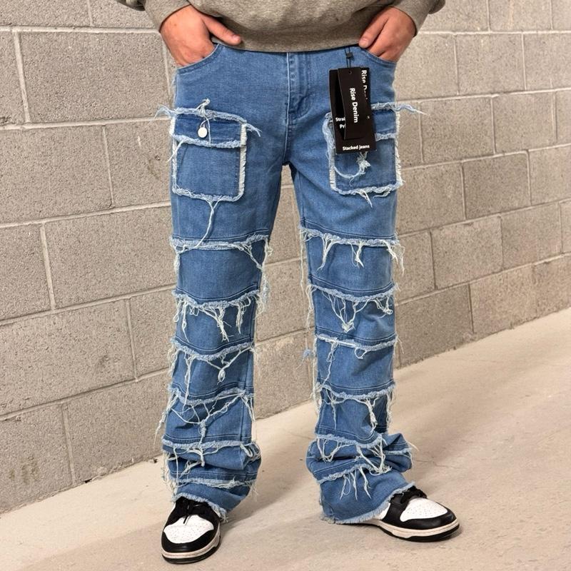 Upgrade your style with the perfect blend of stacked style + flare drip. These men’s jeans are designed with an extra-long inseam that creates a clean stacked look over your sneakers, giving you that modern streetwear silhouette everyone wants.