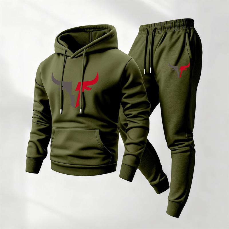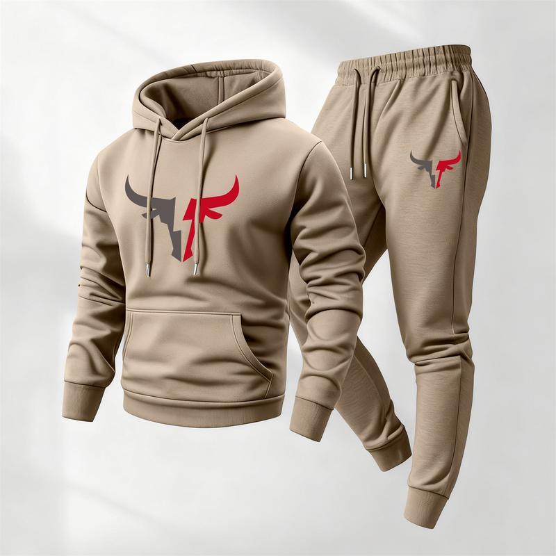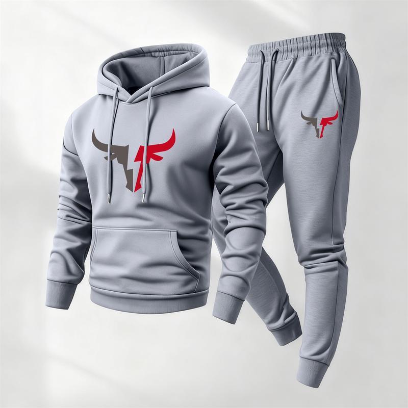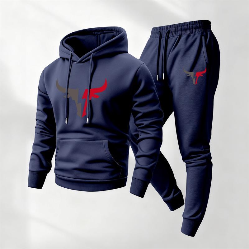 Men's Bull Printed Hoodie and Drawstring Sweatpants Set, Menswear, Casual Athletic Long Sleeve Hooded Jacket & Trousers for Fall & Winter, Men's Clothing for Daily Wear, Sportswear Indoor Outdoor, Tracksuit, Athleisure Summer Clothes