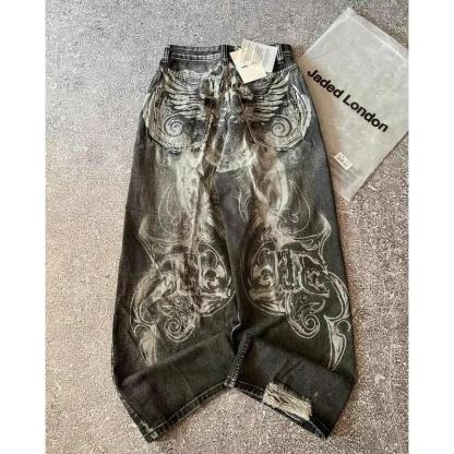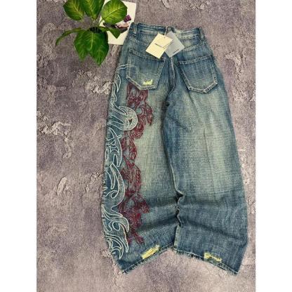 Y2K American New Pattern Embroidery Baggy Jeans