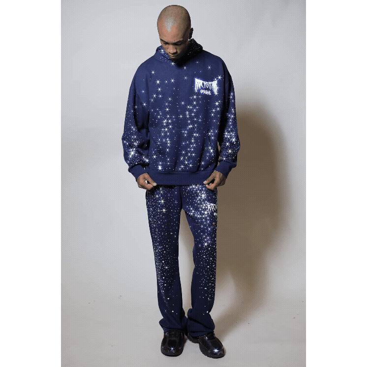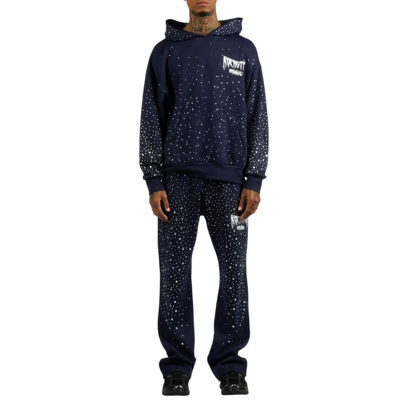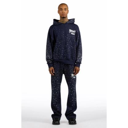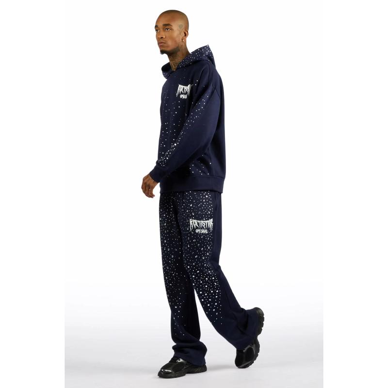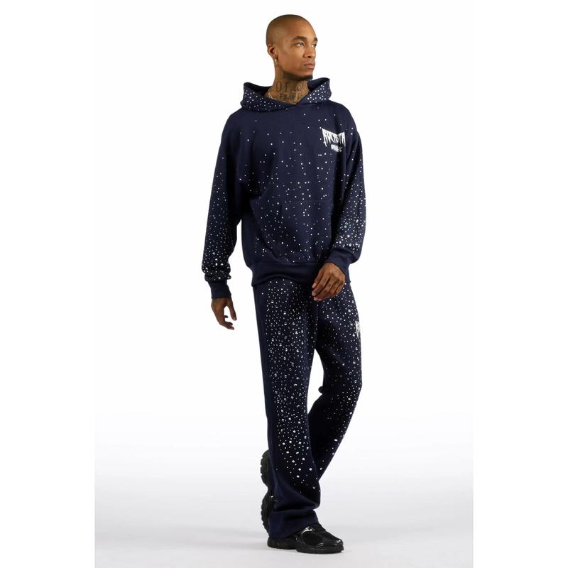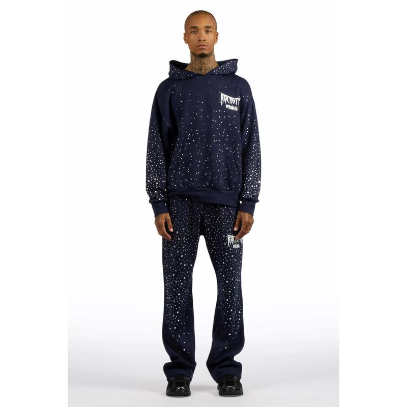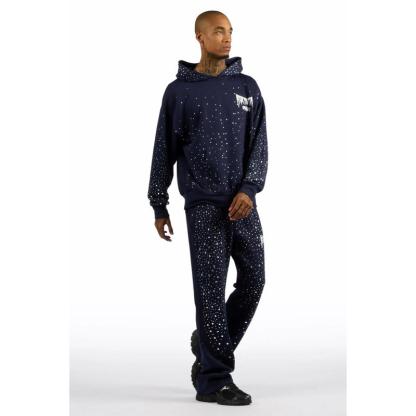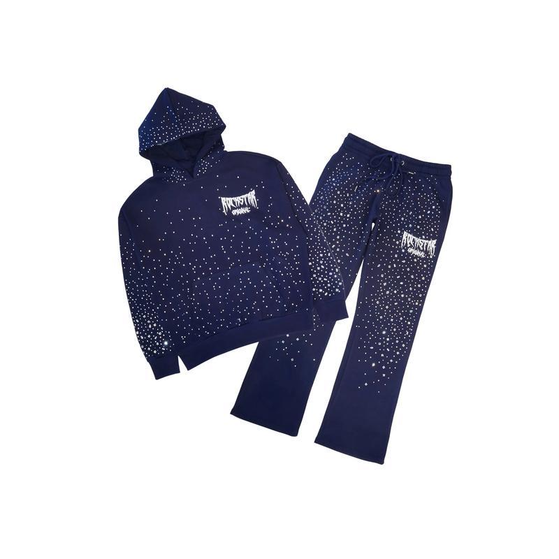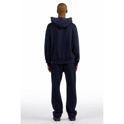 An urban two-piece zip up jacket and sweat pant set for men in navy.Designed with super soft organic cotton and custom detailing for a must-cop basic streetwear essential.